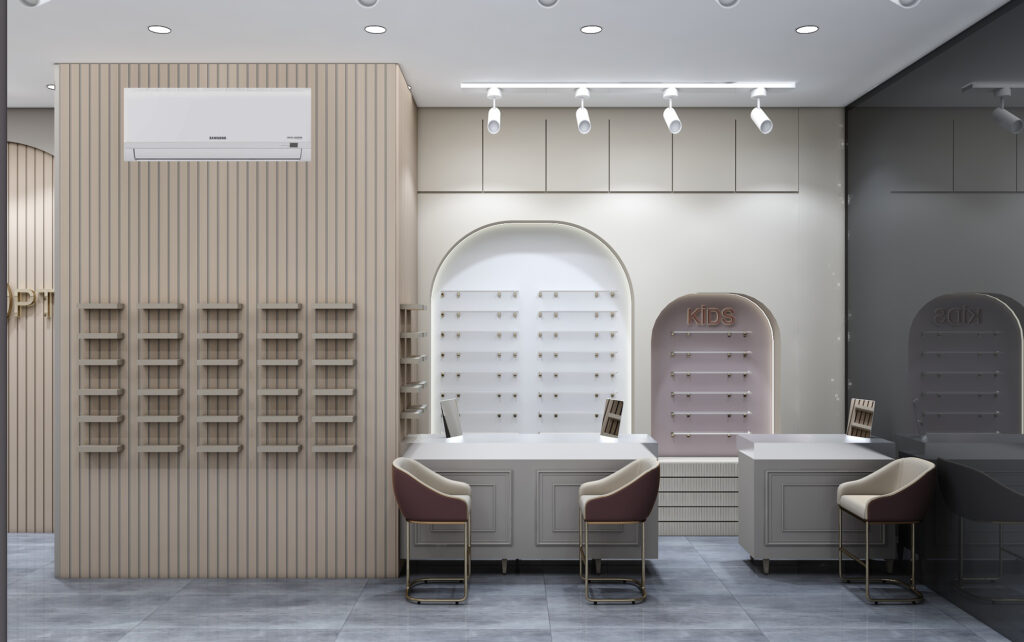 Yıldız Optik için tasarladığımız bu proje, müşteri deneyimini ön planda tutan çağdaş bir perakende mağazası anlayışıyla hayata geçirildi. Görsel sadelik ve ürün odaklılık prensibiyle oluşturulan mağaza kurgusu; gözlük, lens ve aksesuar ürünlerinin etkileyici bir şekilde sunulmasını sağladı. Aydınlatma detayları, raf sistemleri ve vitrindeki odak noktaları; hem fonksiyonel hem de dikkat çekici olacak biçimde tasarlandı. Müşterilere konforlu bir alışveriş deneyimi sunarken, markanın kurumsal kimliğini de güçlü bir şekilde yansıtan bir iç mekân oluşturuldu.